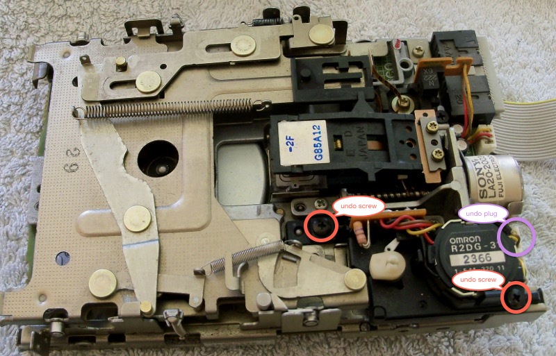 I also forgot about one other common failure. The write protect, disk insert and HD detect switches often become faulty or intermittent. These are the little white posts on the very front edge of the drive. Usually, a little bit of compressed air into the switch followed by a tiny squirt of harsh contact cleaner (RP7, CRC-26 etc) would get them working but sometimes I needed to grab a spare from one of those scrapped drives I mentioned in my previous post.