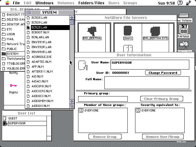 - SUN systems: See this Apple TA article. Author has never seen a SUN system and cannot comment further. The Macintosh Application Environment, or MAE for short, was a way of running System 7 in a X window system, and at the very least could be mildly interesting. This curious KB article has some interesting comments about CAP and PacerShare which wasn't mentioned earlier.