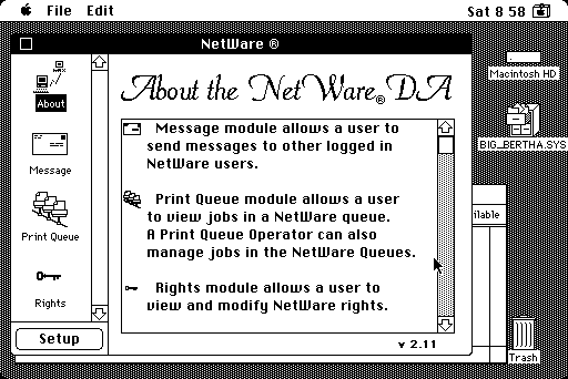 - AppleShare WS 3.5: Not necessarily required in all cases but is worth the effort (AppleShare 2.0 is 44KiB in System 6 versus 76KiB of AppleShare Workstation 3.5, AppleShare 7.0 in System 7 is 72KiB). There is more verbiage about 2GiB volumes further down this page in the Extra Information section. Quick breakdown of issues noted: