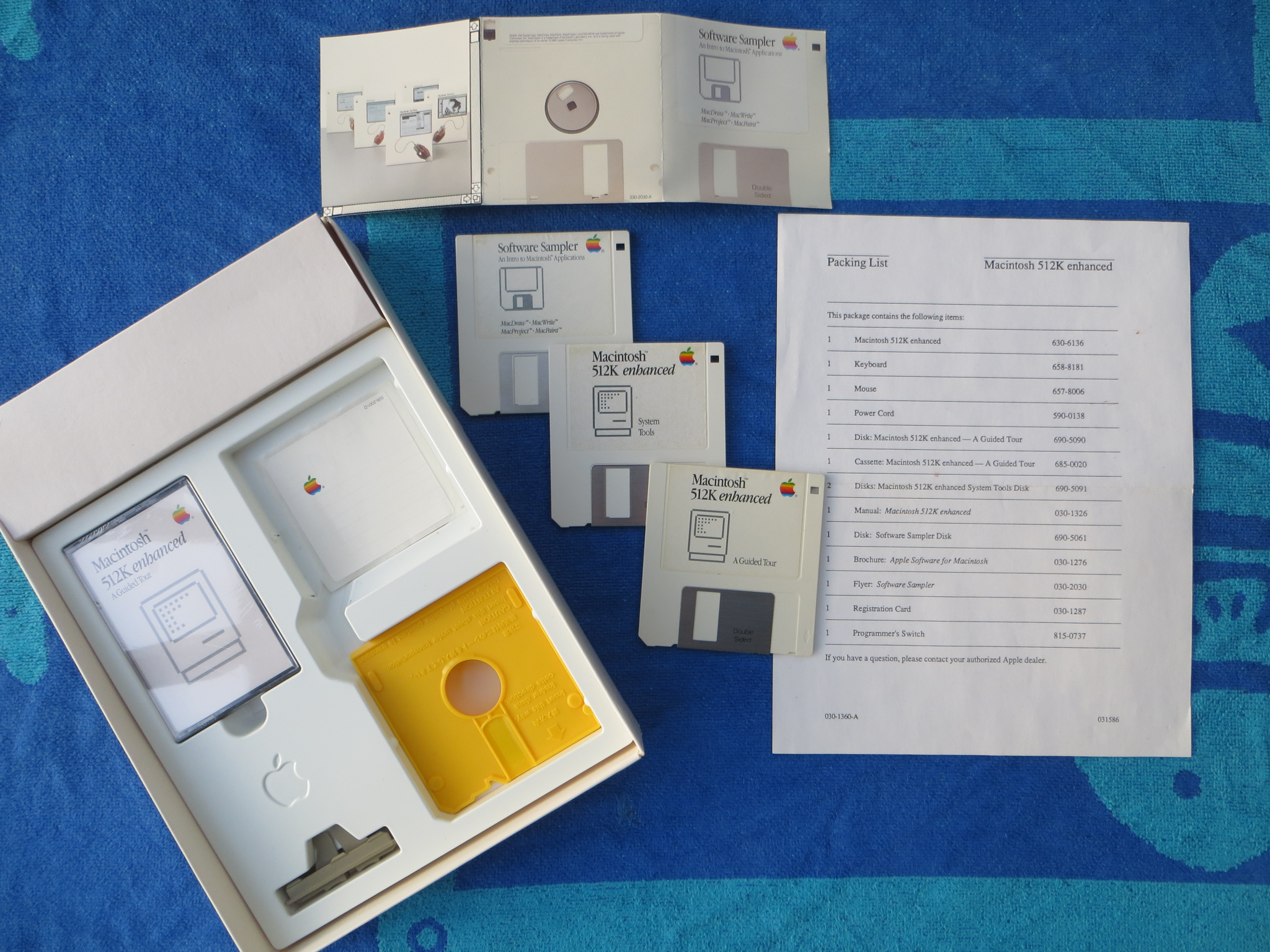 | Disks for a new 512Ke 800KiB | Disks for a new 512Ke computer: System Tools, Guided Tour and Software Sample, all bootable. Audio cassette is still shrinkwrapped, and no cassette player is around, so no archive is possible. Packaging image 1 and image 2. Guided Tour may not be an unmodified image: all were imaged exactly as received |