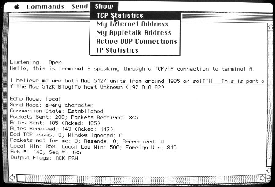 In today's Mac 512K Blog article, we are going to resurrect this long-lost TCP/IP stack, the first-ever written for Macintosh 128K and 512K.