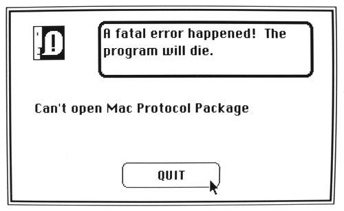 If you double-click telnet or tftp and see an error dialog saying "Can't open Mac Protocol Package," it means you are missing these three resources in your System file.