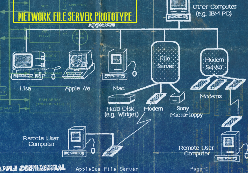 The Macintosh team's strategy for mass storage on Macintosh was unconventional, ahead of its time, and inspired by research at Xerox PARC. This Mac 512K Blog article is all about the AppleBus Network File Server that was planned for Macintosh in 1984.