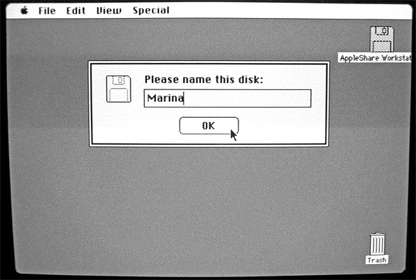 3.) Eject the boot disk from step 1, and insert your disk to be initialized into the 800K drive. Either choose Erase Disk from the Special menu, or follow the initialization dialog if the disk had never been formatted for Macintosh.